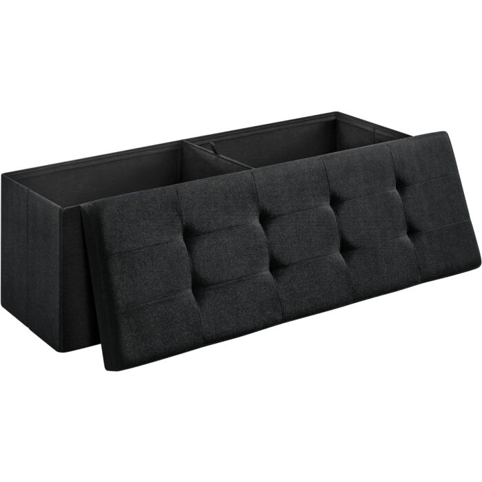 De Hoppa! opvouwbare opbergdoos is een extra stabiele en ruime kist met een maximale statische belastbaarheid van 300 kg. Gemaakt van hoogwaardige MDF-platen en versterkt met een scheidingswand, biedt deze kist een stevige structuur voor diverse toepassingen. Voor extra comfort is de opbergdoos bekleed met 2,5 cm dik schuim en omhuld met ademend zwart linnen, wat bovendien een tijdloze uitstraling geeft. Met een inhoud van 120 liter is er volop ruimte voor beddengoed, dvd’s, boeken en kleding. Deze veelzijdige opbergcontainer functioneert als comfortabele voetensteun in de woonkamer, schoenwisselkruk in de hal, slaapbank in de slaapkamer of organizer voor kleine spullen. Een echte allrounder die zowel functioneel als decoratief in elk interieur past.