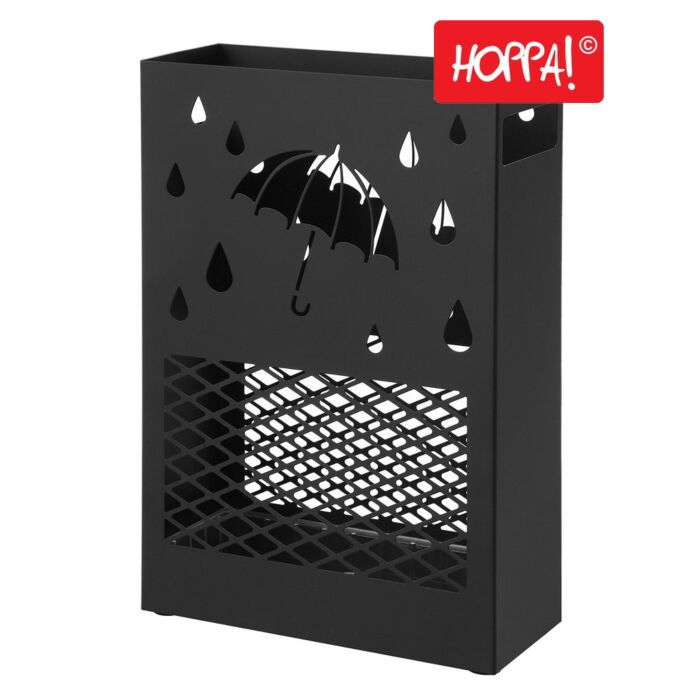 Hoppa! Paraplubak | Parapluhouder | Paraplustandaard met lekbak | Zwart metaal | 13 x 29 x 42 cm (B x D x H)
