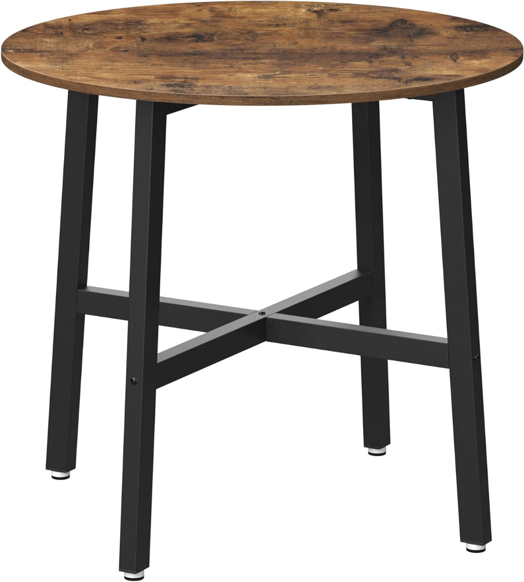 Deze ronde keukentafel heeft een diameter van 80 cm en een hoogte van 75 cm. Het is gemaakt van hoogwaardig hout en sterk staal voor duurzaamheid en stabiliteit.