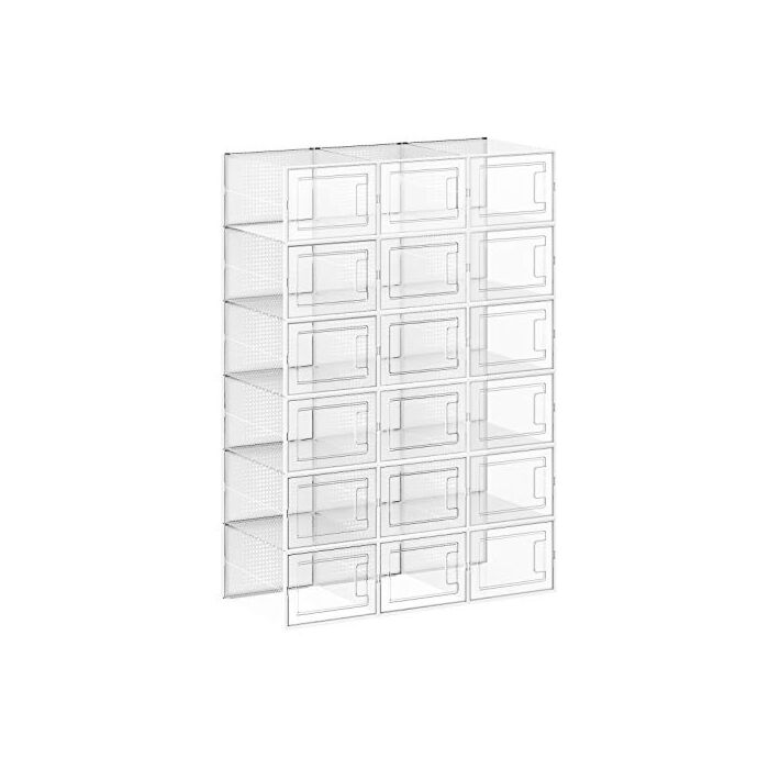 - Set van 18 opvouwbare, transparante schoenendozen voor ultieme ordening.