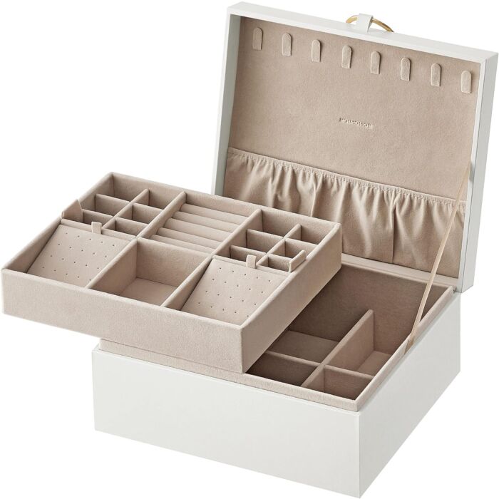 Hoppa! | Sieradendoos | 2-laags Sieradendoosje | Afneembaar sieradenrek | Zwevend effect | Beige | 20,5 x 24 x 11 cm (B x D x H)
