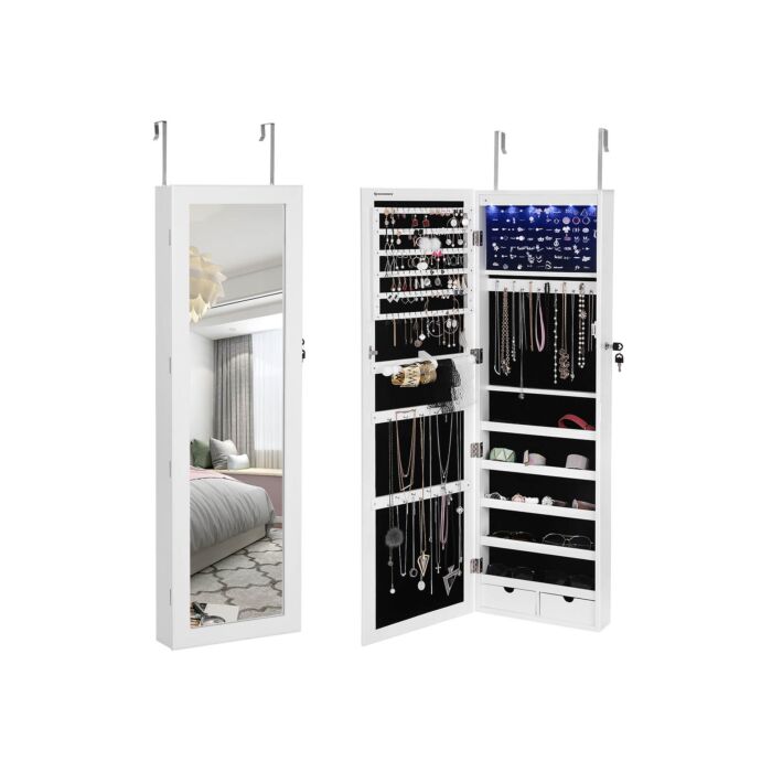 De Hoppa! sieradenkast opknoping is ideaal voor het opbergen van al je sieraden op een georganiseerde en stijlvolle manier. Met talrijke vakken en haken kun je kettingen, oorbellen en andere accessoires netjes opbergen.