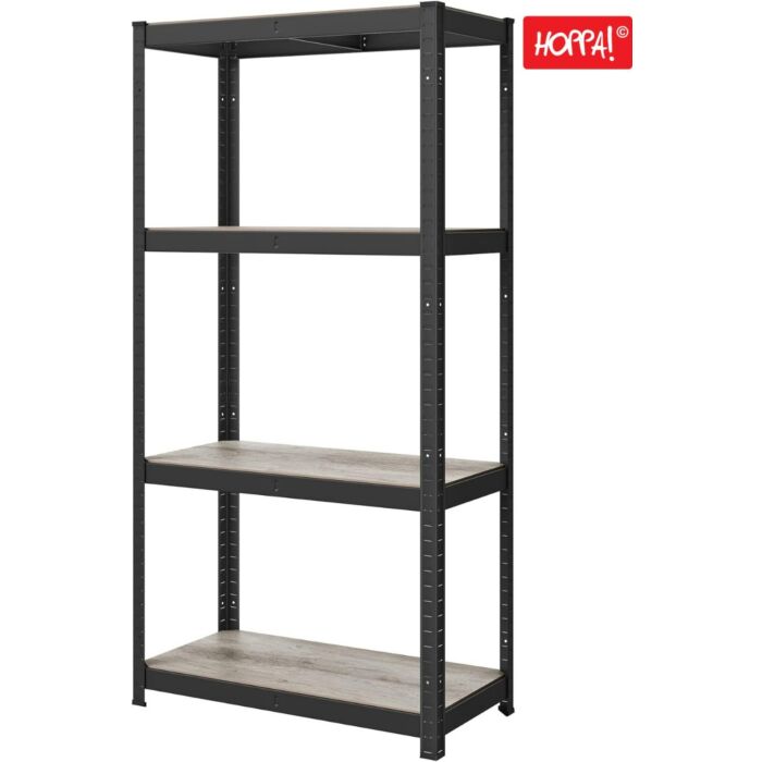 Hoppa! | Magazijnstelling - Opbergrek | 80 x 41 x 161 cm (B x D x H) | Grijs/Zwart