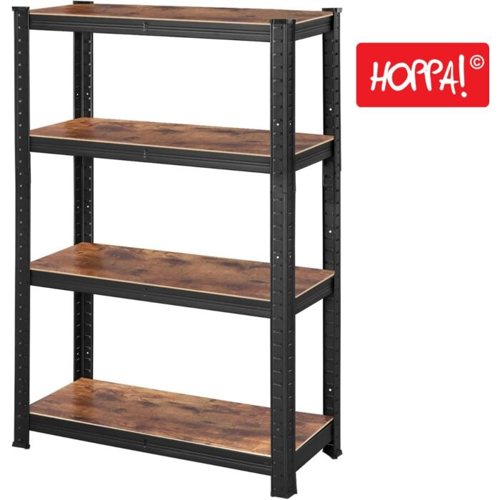 Hoppa! Magazijnstelling & Opbergrek – 80 × 41 × 161 cm, tot 545 kg belastbaar – bruin/zwart
