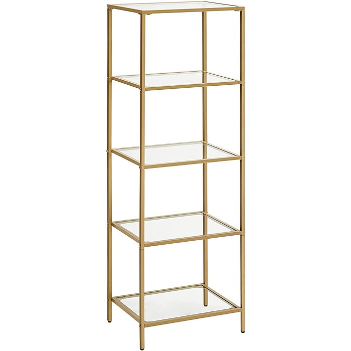 Uw huis verdient een beetje luxe: rechte lijnen, glazen legplanken en een gouden stalen frame. Plaats deze eenvoudige maar stijlvolle staande plank in uw woning en creëer een luxueuze ambiance.
