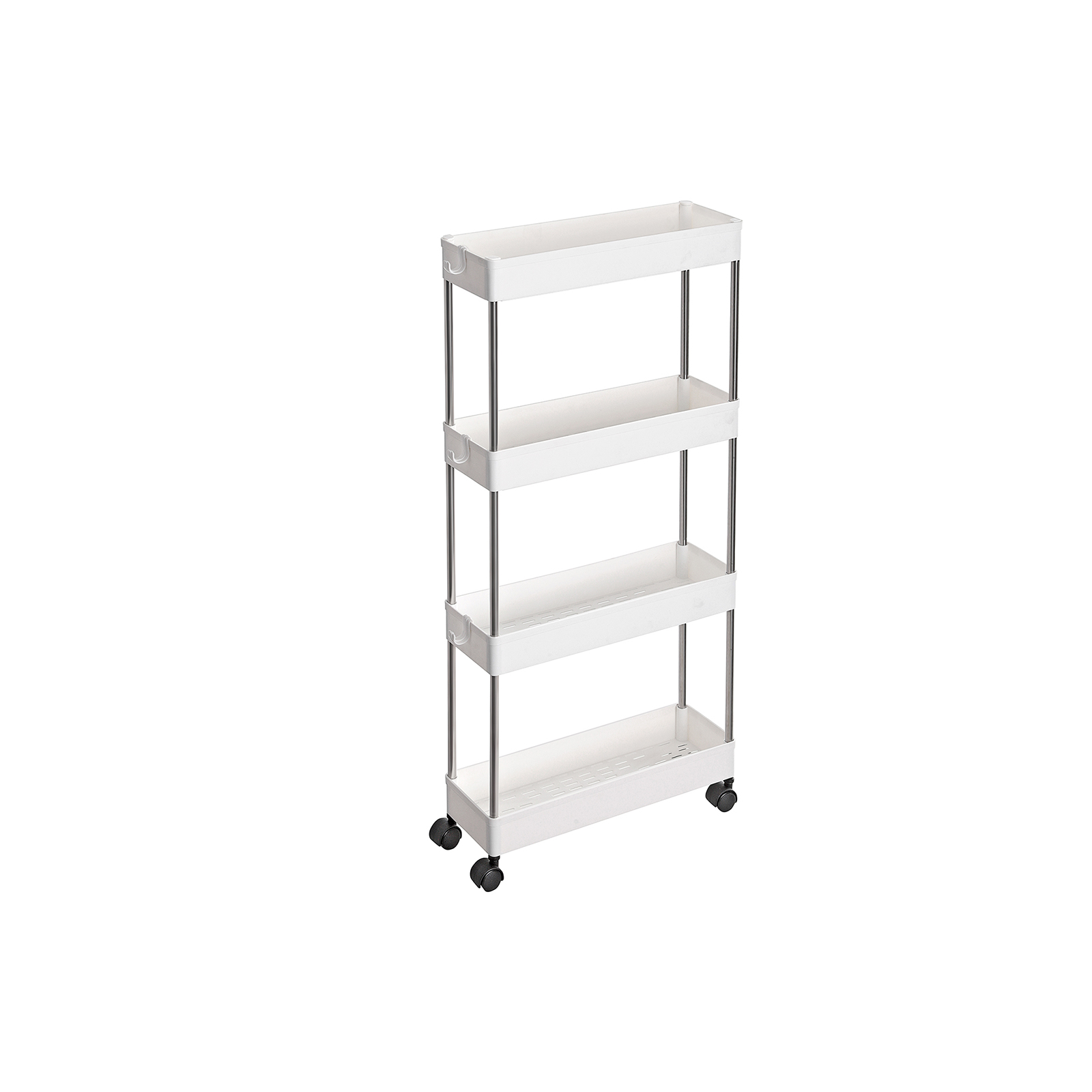 Deze veelzijdige wagen kan worden gebruikt in de keuken voor het opbergen van servies en ingrediënten, in de badkamer voor toiletartikelen, of in andere ruimtes voor het organiseren van diverse spullen. De 3 meegeleverde haken bieden extra mogelijkheden voor het ophangen van items.