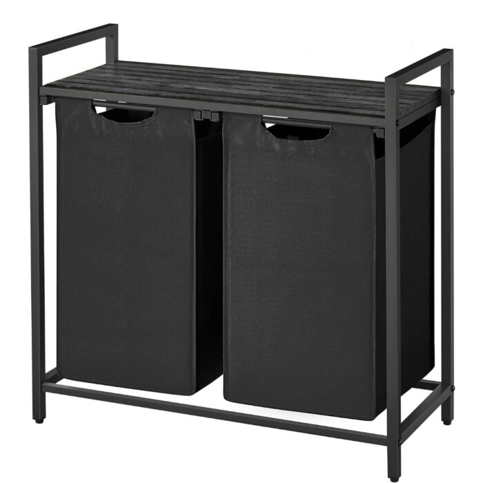 Deze wasmand heeft een stevige constructie met afmetingen van 73 x 33 x 72 cm (L x B x H). De zakken zijn 30 x 30 x 51 cm groot en zijn vervaardigd uit waterdichte Oxford-stof, wat ervoor zorgt dat je wasgoed goed beschermd is tegen eventuele morsingen.