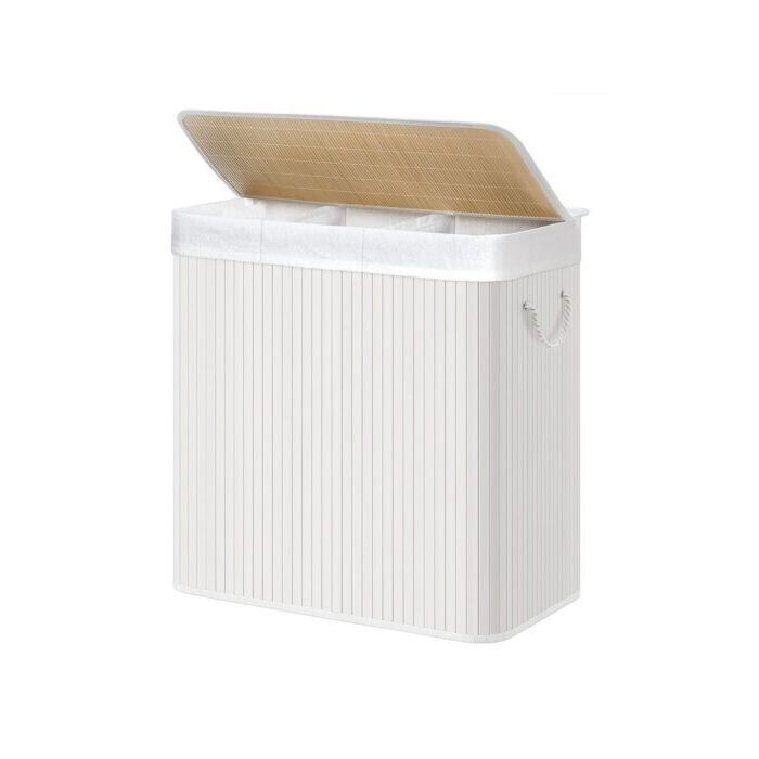 Hoppa! Wasmand | Bamboe | 3 vakken | 150 L | Opvouwbaar | Wit