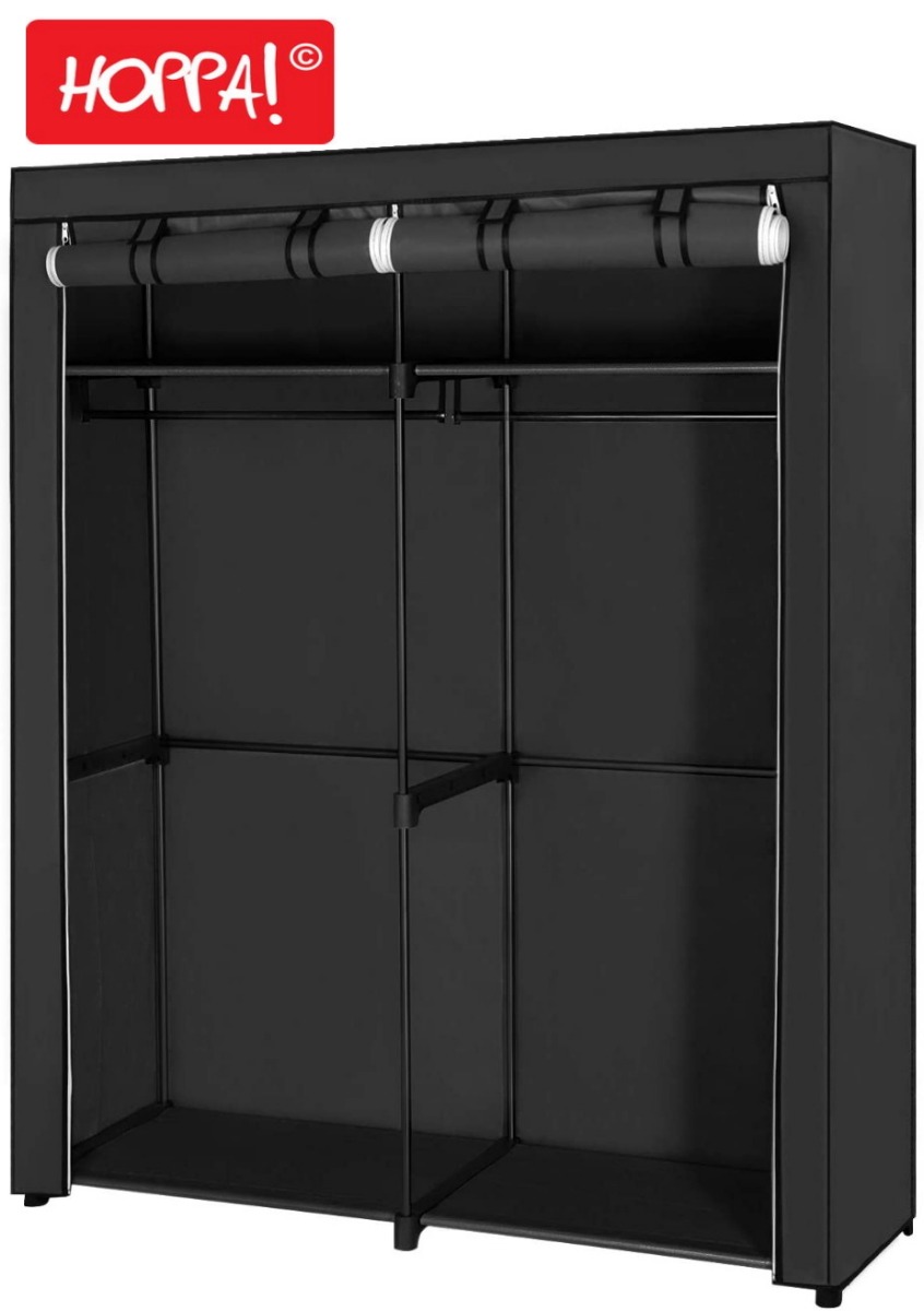 Hoppa! | Stoffen kledingkast | 2 kledingrails | grijs | 140x174x43 cm (BxDxH)