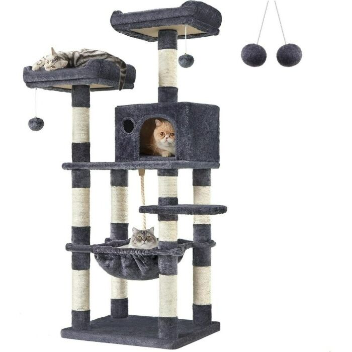 - Gezellig kattenhuis met 2 uitkijkplatformen en hangmat
