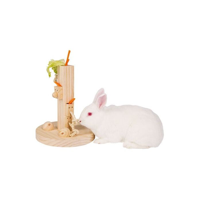 Deze leuke interactieve speelboom is de musthave voor ieder nieuwsgierig konijntje of cavia. De speelboom bevat verschillende niveaus van moeilijkheid. Door te schuiven, trekken, rollen of liften komt er een lekkernij tevoorschijn als beloning.
