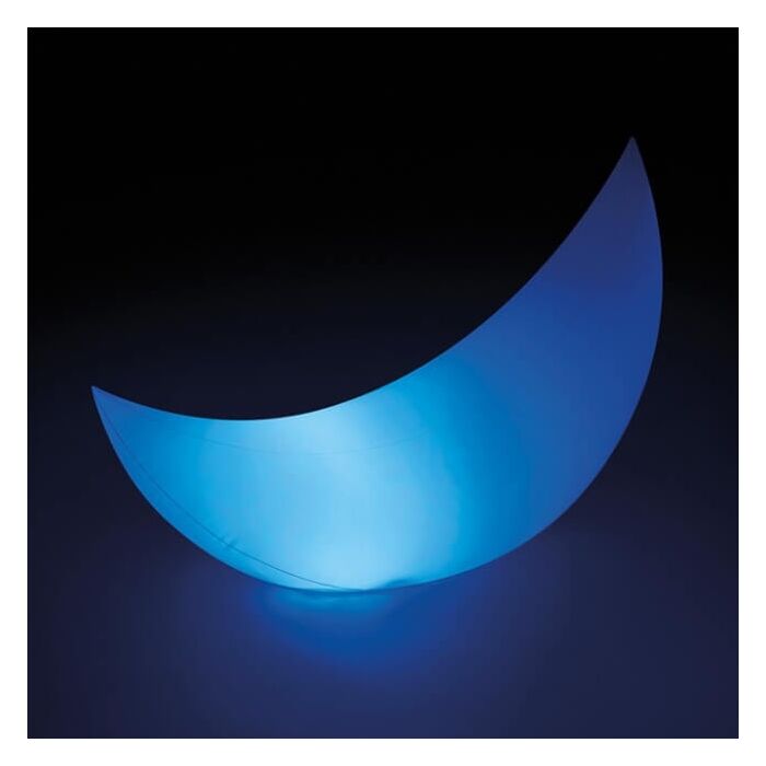Sfeervol LED licht in de vorm van een halve maan. Het opblaasbare LED licht is geschikt voor indoor en outdoor gebruik en is voorzien van een oplaadbare batterij (brandtijd min. 5 uur). De opblaasbare lamp kan branden in wit licht, of in 6 afwisselende kleuren. De lamp schakelt zichzelf na 5 uur automatisch uit. Na gebruik kan de batterij opgeladen worden met de meegeleverde USB kabel (let op: geen stekker meegeleverd).