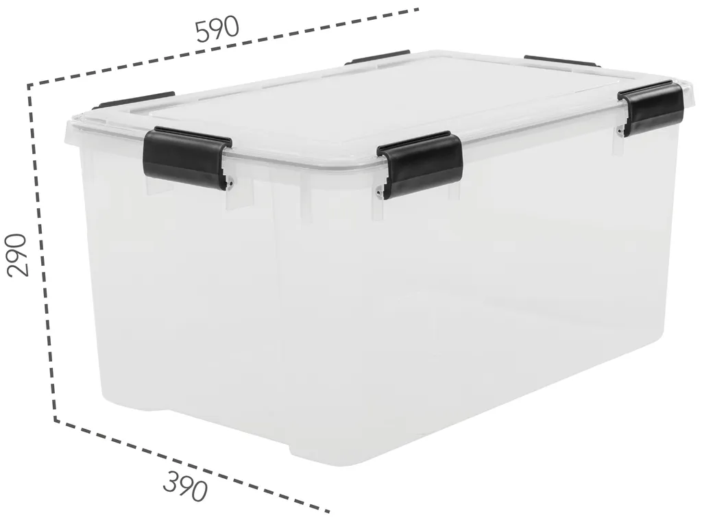 De Iris Airtight Box is ideaal voor thuisgebruik, opslag in garages, kelders, of andere ruimtes. Geschikt voor het opbergen van diverse items zoals kleding, speelgoed, dekens, en meer.