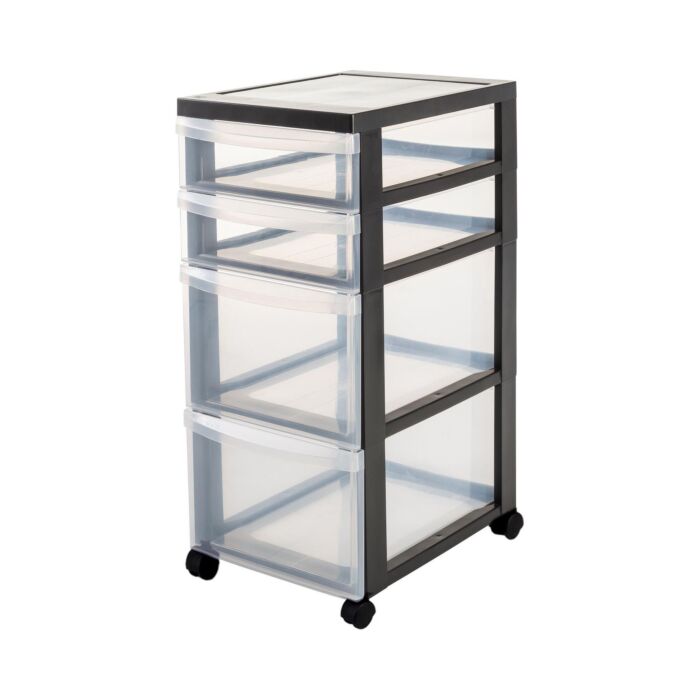 De Iris ladekast is een praktische opbergoplossing met vier ruime lades, ideaal voor het organiseren van verschillende spullen in huis. Met een afmeting van 39x29x62 cm past deze ladekast perfect in diverse ruimtes. De toegevoegde wieltjes maken het eenvoudig om de kast te verplaatsen als dat nodig is.