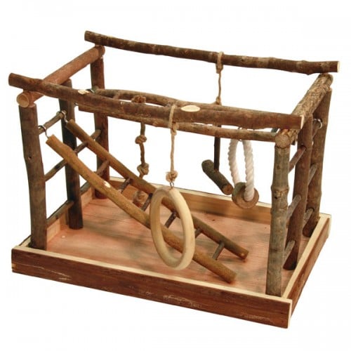 Leuke speeltuin voor kleine kromsnavels gemaakt van natuurlijke en diervriendelijke materialen. Deze favoriete speelplaats is van alle fitness gemakken voorzien. Houdt je vogel van klimmen of het balanceren op een schommel, speelring of klimtouw, dan is dit het ideale cadeau.