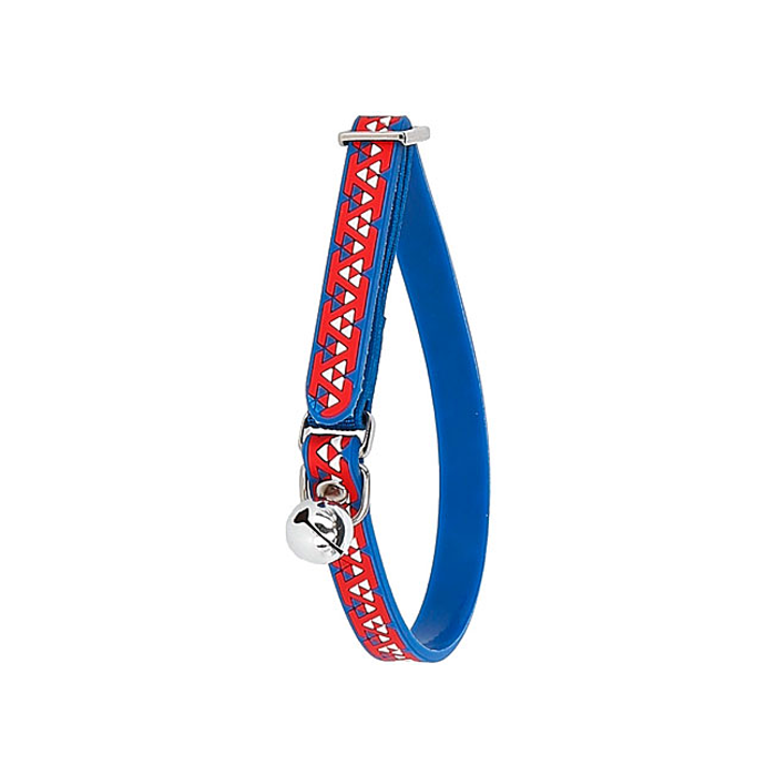 Deze kattenhalsband is vervaardigd uit PVC en voorzien van een bel en elastische inzet. Dankzij de elastische inzet en de schuifsluiting kan het bandje in noodgevallen gemakkelijker loslaten, voor de veiligheid van de kat.