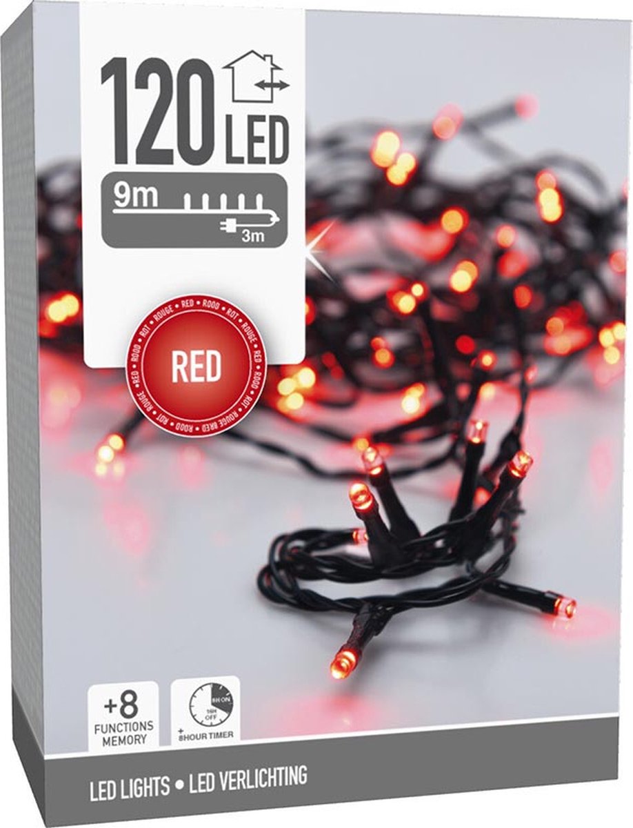 Kerstverlichting | 120 LED’s | Rood | 9 meter | Timer & Lichtfuncties