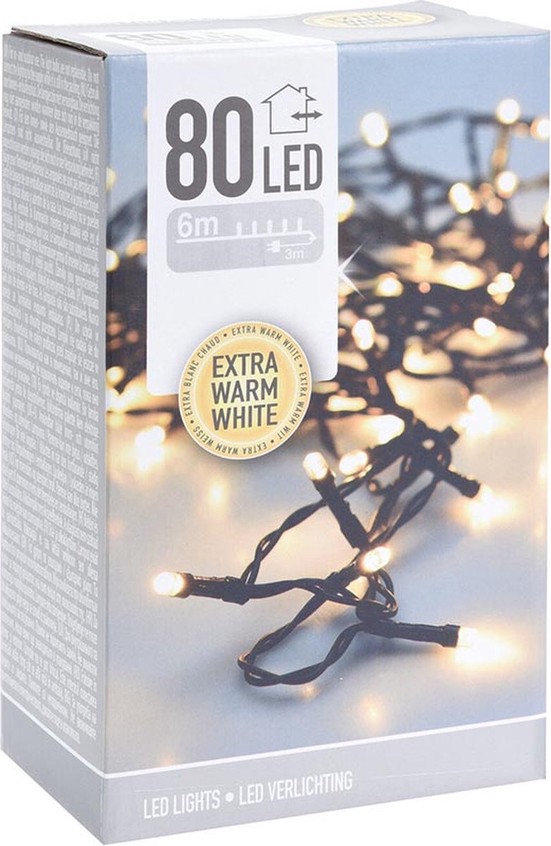 Kerstverlichting voor buiten, 6 m, extra warm wit, 80 LED-lampjes