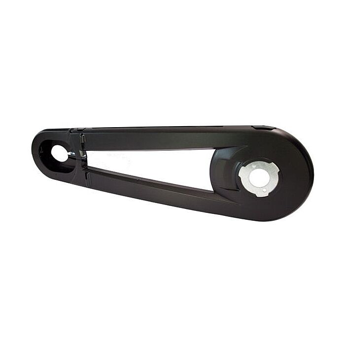 Het ontwerp van de Hesling Xcero kettingkast zorgt ervoor dat de ketting aan de voorzijde volledig wordt afgeschermd. Dit voorkomt dat voeten en kleding vast komen te zitten tijdens het fietsen. De kettingkast is uitgerust met een crankgat met een diameter van 38 mm, wat bijdraagt aan de gebruiksvriendelijkheid en compatibiliteit met verschillende fietsmodellen.