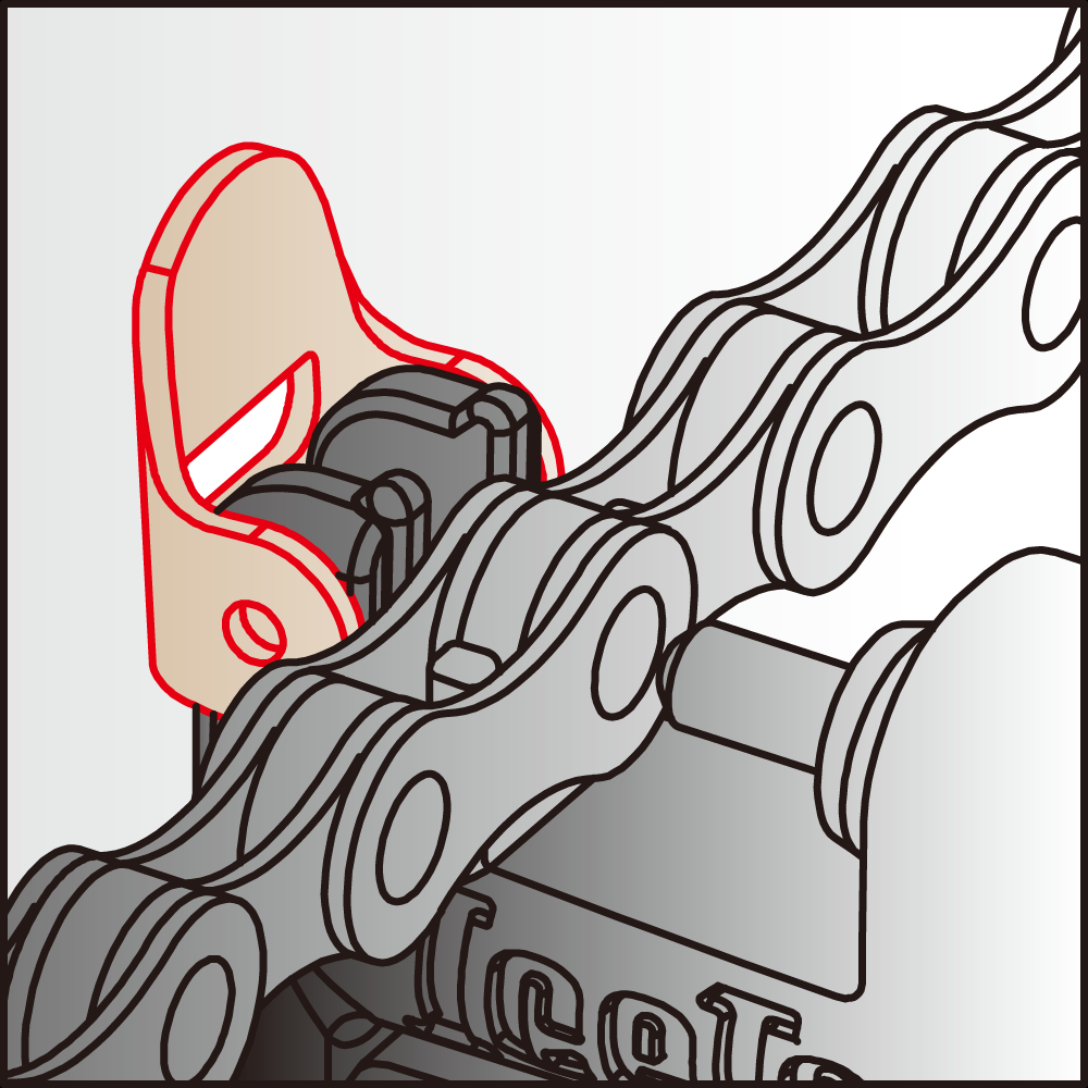 - Speciaal gevormde geleider voor eenvoudige kettingplaatsing