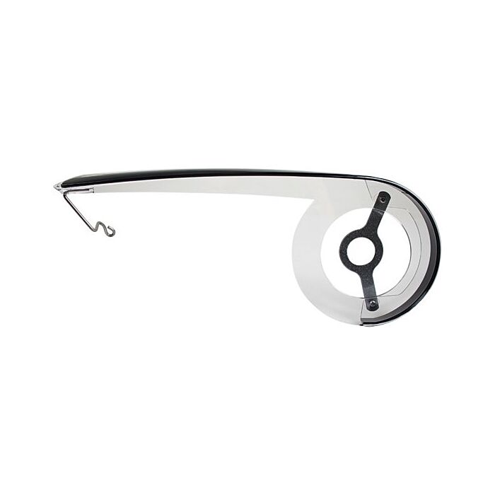 Het 1-vleugelige ontwerp van het kettingscherm zorgt ervoor dat het eenvoudig te monteren is en ideaal is voor gebruik bij verschillende fietstypes. Het scherm biedt de benodigde bescherming voor het crankblad en helpt rondslingerende vuildeeltjes, regenwater en andere elementen te blokkeren die de levensduur van de ketting kunnen reduceren. Dit garandeert een soepele en efficiënte werking van de fietsketting.