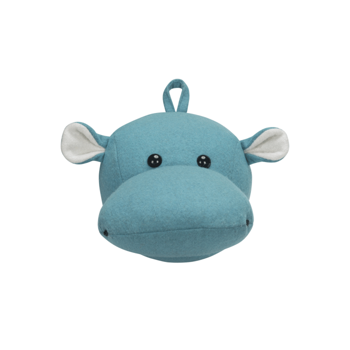 Kidsdepot Zoo Hippo Blue | Vilten Dierenkop | Vintage afwerking