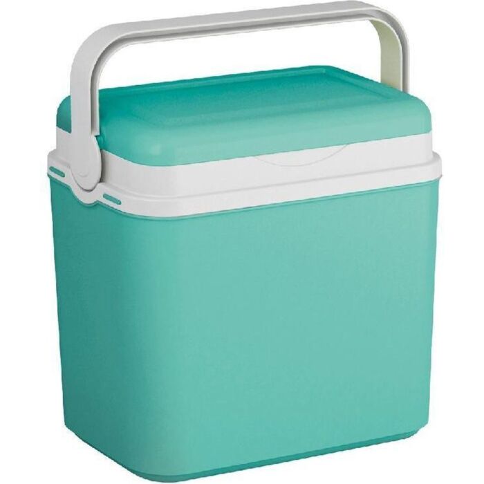 Een handige koelbox om mee te nemen op vakantie! Door het hengsel kan de koelbox eenvoudig gedragen worden. Verkrijgbaar in turquoise kleurstelling. Inhoud: 10 Liter.