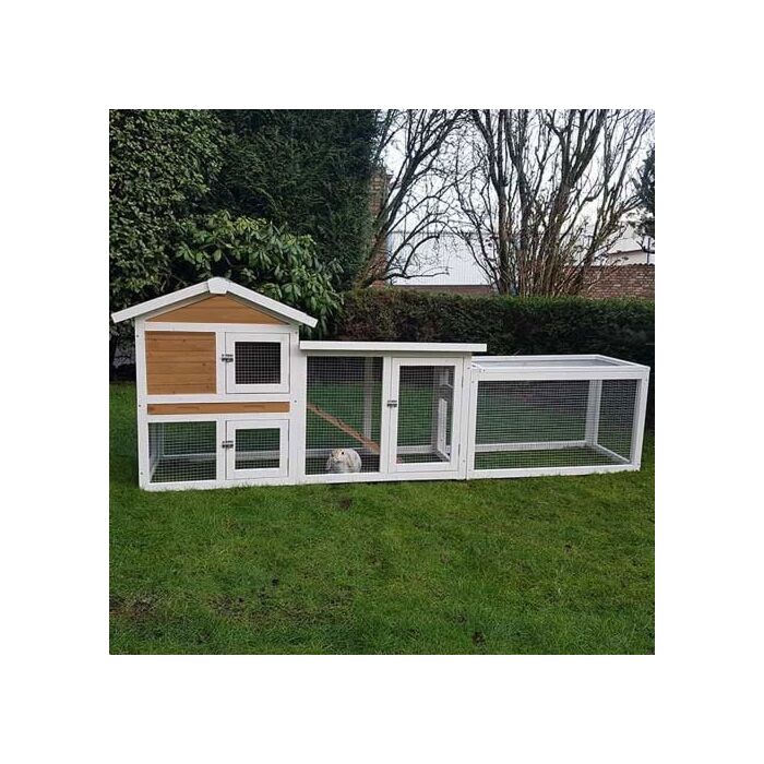 Konijnenhok Queensland XL is ontworpen voor de dierenliefhebbers die hun konijnen extra ruimte en comfort willen bieden. Met een royale afmeting van 229x53x85cm is dit hok ideaal voor dwergkonijnen, waardoor ze zich vrij kunnen bewegen en speeltijd kunnen genieten.
