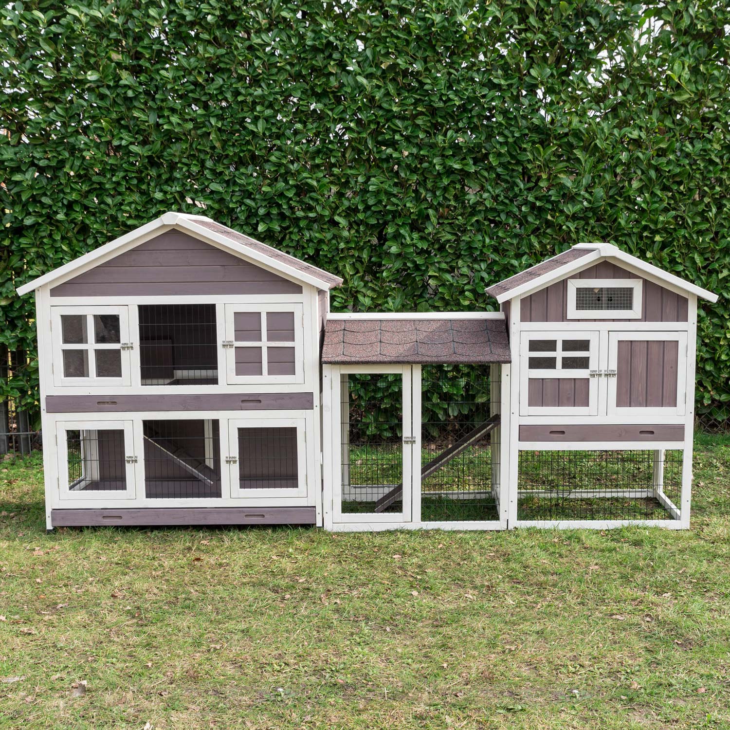 Konijnenhok Sissi | 287,5 x 70 x 133 cm | Geschikt voor meerdere konijnen | Met tussenren