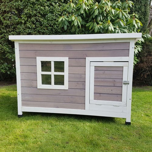 Dit konijnenhok is speciaal ontworpen voor de grotere konijnenrassen. Het is een ruim binnenverblijf met een handige uitneembare lade en een scharnierend dak. Ideaal in combinatie met een losse ren of wanneer de konijnen vrij in de tuin mogen lopen.