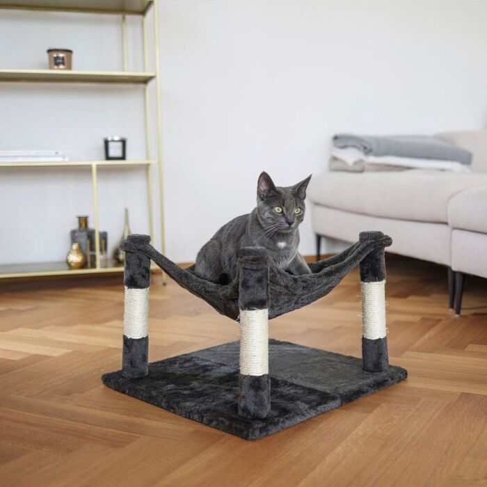 De hangmat biedt een comfortabele slaapplek en de sisalpalen zorgen voor extra krabmogelijkheden voor je kat, waardoor het zowel functioneel als leuk is.