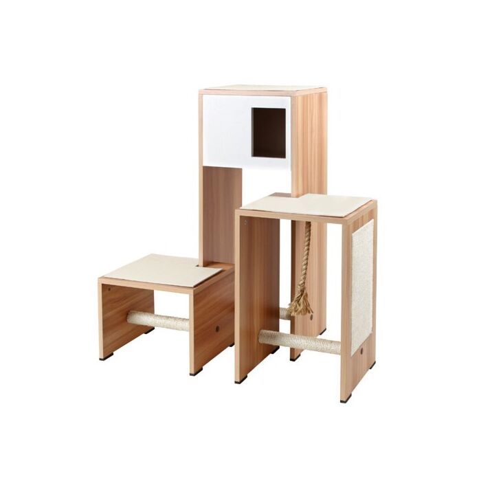 Dit moderne designkrabmeubel is een blikvanger in je (katten)kamer! Je bepaalt zelf hoe je de verschillende elementen plaatst, zodat je regelmatig van opstelling kunt wisselen. De lichte houtstructuurprint in combinatie met vilten kussens geeft dit meubel een eigentijdse en toch neutrale uitstraling. Niet alleen je kat profiteert hiervan; ook jij geniet van dit fraaie meubelstuk.