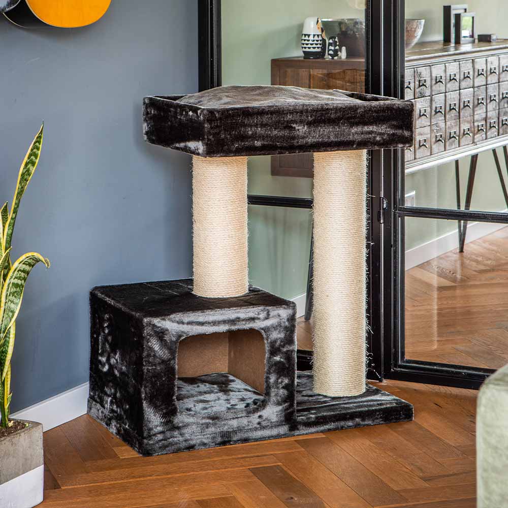 Krabpaal Bandit in grijs van het merk Quapas! biedt een perfecte combinatie van stabiliteit, comfort en stijl voor uw katten. Met zijn royale afmetingen is deze krabpaal niet alleen aantrekkelijk voor kleine maar ook voor grotere katten, die graag willen krabben, klimmen en rusten.