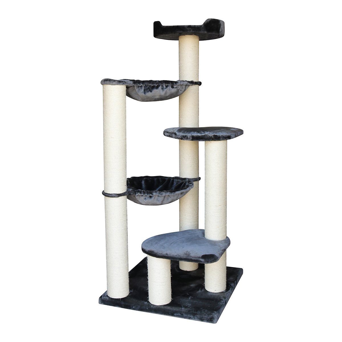 Ontworpen om te voldoen aan de natuurlijke behoeften van katten: meerdere niveaus bevorderen klim- en klautermogelijkheden, waardoor het jachtinstinct optimaal tot uiting komt. De hangmanden en ligplateaus zijn ideaal voor katten die graag vanaf hoogte hun territorium observeren.