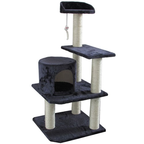 De Krabpaal Elma is uitgerust met verschillende plateaus waar uw kat op kan springen en liggen. Het huisje biedt een veilige en comfortabele plek waar uw kat zich kan terugtrekken. Het aantrekkelijke ontwerp in grijs en blauw integreert mooi in elk interieur.