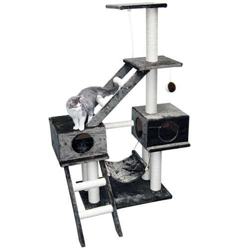 Krabpaal Granat Grijs – een absolute bestseller! Afmetingen: 70 x 50 x 150 cm Deze krabpaal in rustgevend granietgrijs biedt uw kat volop comfort en speelplezier. Twee zachte ligplateaus vormen ideale rust- of schuilplekjes, terwijl de stevige sisalpalen talloze krabmogelijkheden bieden en uw meubels sparen. Dankzij de trapjes zijn alle verdiepingen moeiteloos bereikbaar en de hangmat zorgt voor een extra favoriete slaapplek.