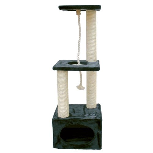 Alle sisalpalen zijn bedekt met stevig sisal verlijmd aan de palen. Voor een dutje of een gezellig onderkomen kan de kat wegkruipen in zijn eigen penthouse in het onderste slaaphuisje. Het uitdagende slingertouw en de zacht pluche bekleding op de drie verschillende verdiepingen maken het helemaal af