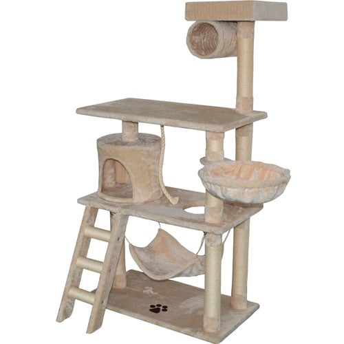De krabpaal heeft een afmeting van 76 cm in hoogte, 40 cm in breedte en 140 cm in diepte. Het stevige materiaal zorgt ervoor dat de paal niet omvalt, zelfs als meerdere katten tegelijkertijd spelen en ontspannen. De neutrale beige kleur past mooi in elk interieur.