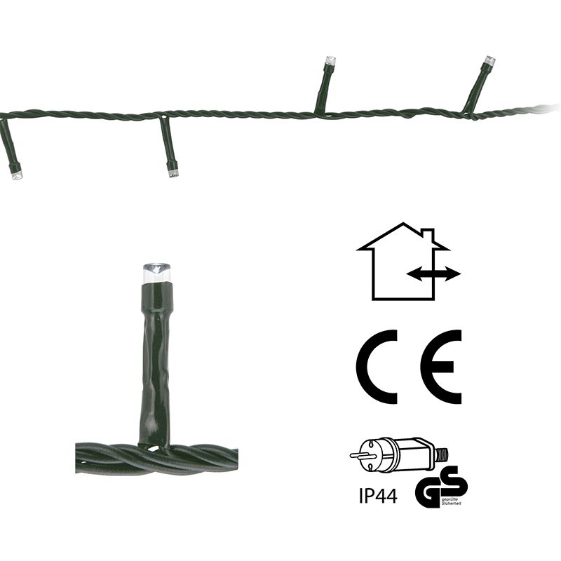 Het lichtsnoer heeft in totaal een lengte van 39 meter, inclusief een aanloopsnoer van 3 meter. Met een afstand van 7.5 cm tussen de LED's, verspreiden ze een gelijkmatige en sfeervolle verlichting. Het snoer is groen, wat het geschikt maakt voor een natuurlijke uitstraling in de tuin of op een balkon.