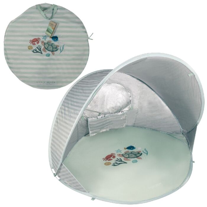 Hello Beach! De Little Dutch Fresh Greens Pop-up Tent is de perfecte metgezel voor een dagje strand. Dankzij het pop-up ontwerp zet je de tent razendsnel op en vouw je hem net zo snel weer in. Onder de beschutte kap zit je heerlijk in de schaduw, met genoeg ruimte om te chillen en te spelen. Het ingebouwde vakje biedt plek voor zonnebrand, een drankje of andere spulletjes.