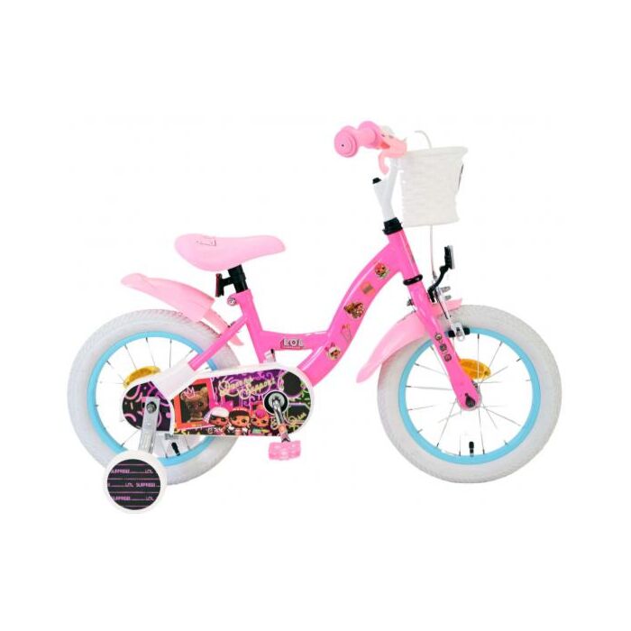 De LOL Surprise kinderfiets is 14 inch en uitgevoerd in een mooie roze kleur.