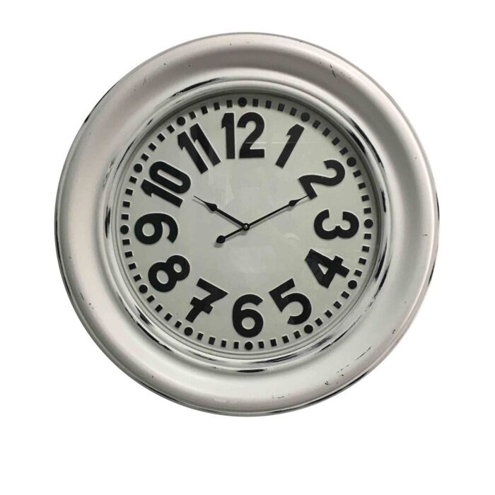 Deze klok heeft een diameter van 79 cm en is 9,5 cm diep, wat het een prima formaat maakt voor wandmontage. Gemaakt van duurzame materialen, waaronder een stevige metalen rand en helder glas, garandeert het een lange levensduur en elegantie.
