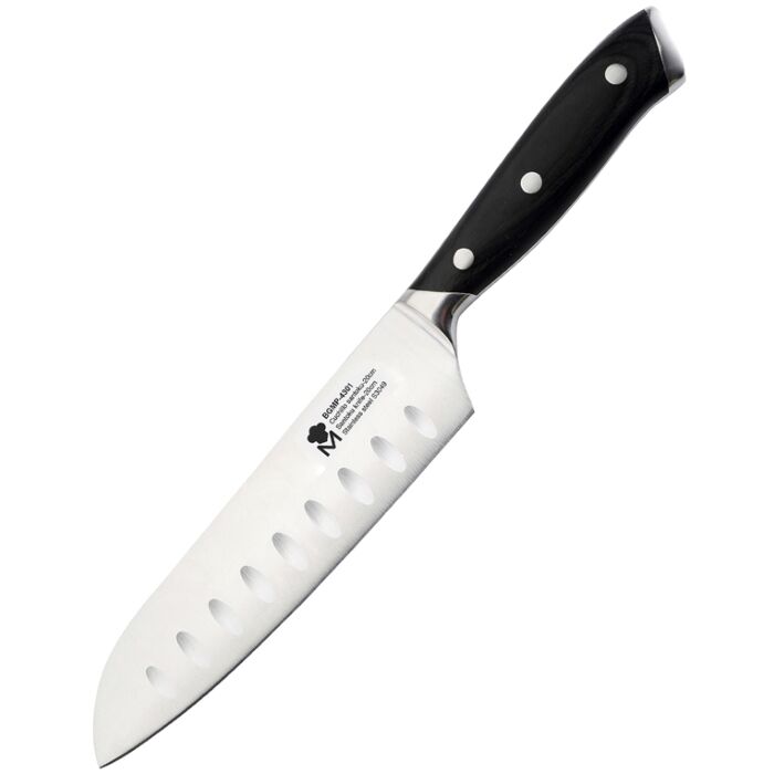 De unieke vorm van het santokumes stelt je in staat om met een andere snijdtechniek te werken; je snijdt recht naar beneden. Dit maakt het gemakkelijker om gelijkmatige sneden te maken. Het lemmet is voorzien van kuiltjes, waardoor plakken, zoals bij kaas en vleeswaren, eenvoudig kunnen worden gesneden zonder dat deze blijven plakken aan het mes.