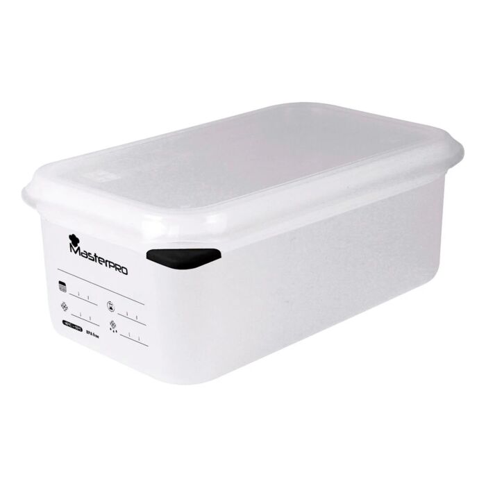 Deze vershoudbak is veelzijdig en geschikt voor zowel huishoudelijk als professioneel gebruik. Ideaal voor het bewaren van restjes, maaltijden voor de week of het voorbereiden van ingrediënten voor een eenvoudige maaltijd. Met de Masterpro vershoudbak behoudt u de versheid van uw voedingsmiddelen en minimaliseert u voedselverspilling. Dankzij het aantrekkelijke ontwerp is het ook een mooie toevoeging aan elke keuken.