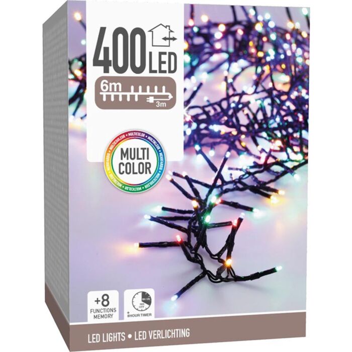 Maxi cluster kerstverlichting | 400 LEDs | multicolor | 6 m verlichte lengte | timer- en lichtfuncties