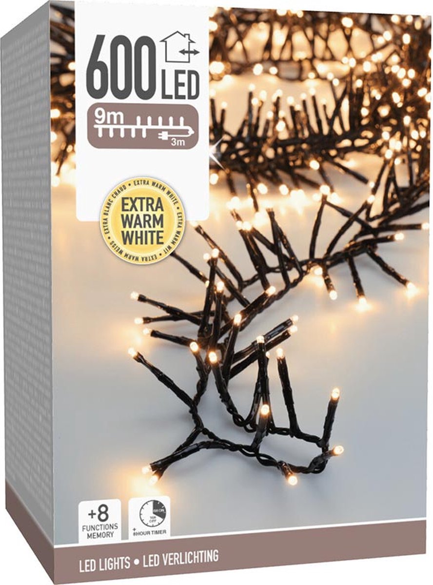Maxi Cluster Kerstverlichting | 600 LED's | Extra Warm Wit | 9m | Buiten