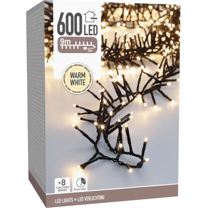 Maxi Cluster Kerstverlichting | 600 LED | Warm Wit | 9 m | Timer en Lichtfuncties