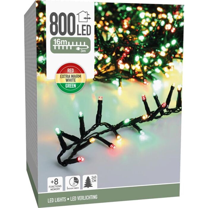 Microcluster | Kerstverlichting | 800 LED, 16 m, 3 kleuren, Timer, Geheugen