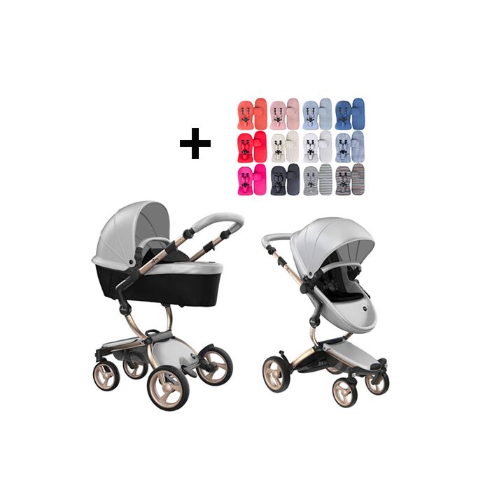 Mima Xari Kinderwagen | Frame - Champagne | Zitting + Kap - Argento | Starter Pack - Black
