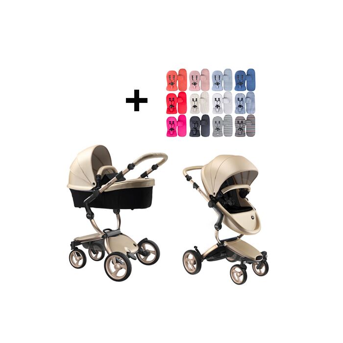 Mima Xari Kinderwagen | Frame – Champagne | Zitting + Kap – Champagne | Starterset – Zwart
